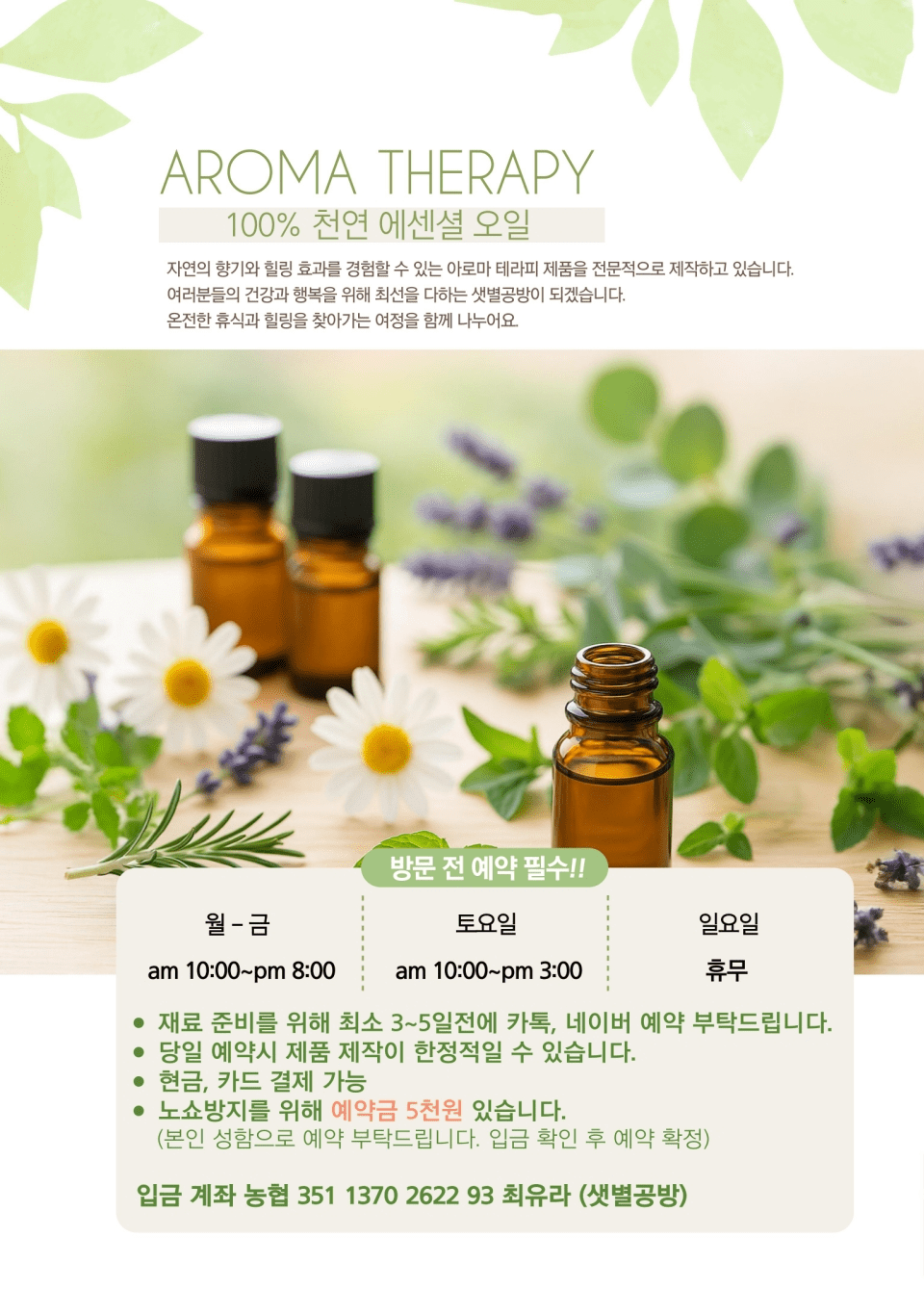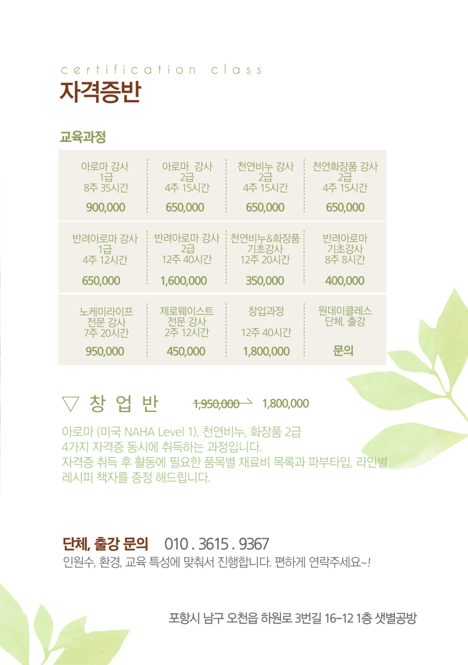 아로마, 천연비누, 화장품, 방향제품 등 다양한 전문 과정으로 구성되어 있으며,